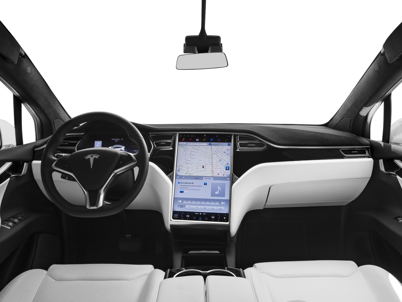 - Radio: AM/FM/HD/USB w/17" Touchscreen Controls -inc: 9 speaker stereo system, online radio, on-demand internet radio, Bluetooth® and Bluetooth-enabled, voice controlled handsfree phone system, The Model X 17" touchscreen controls most of the car's functions, Customizing the automatic climate control and changing the radio station all happen w/a swipe or a touch, The touchscreen, digital instrument cluster, and steering wheel controls seamlessly integrate media, navigation, communications, cabin controls and vehicle data