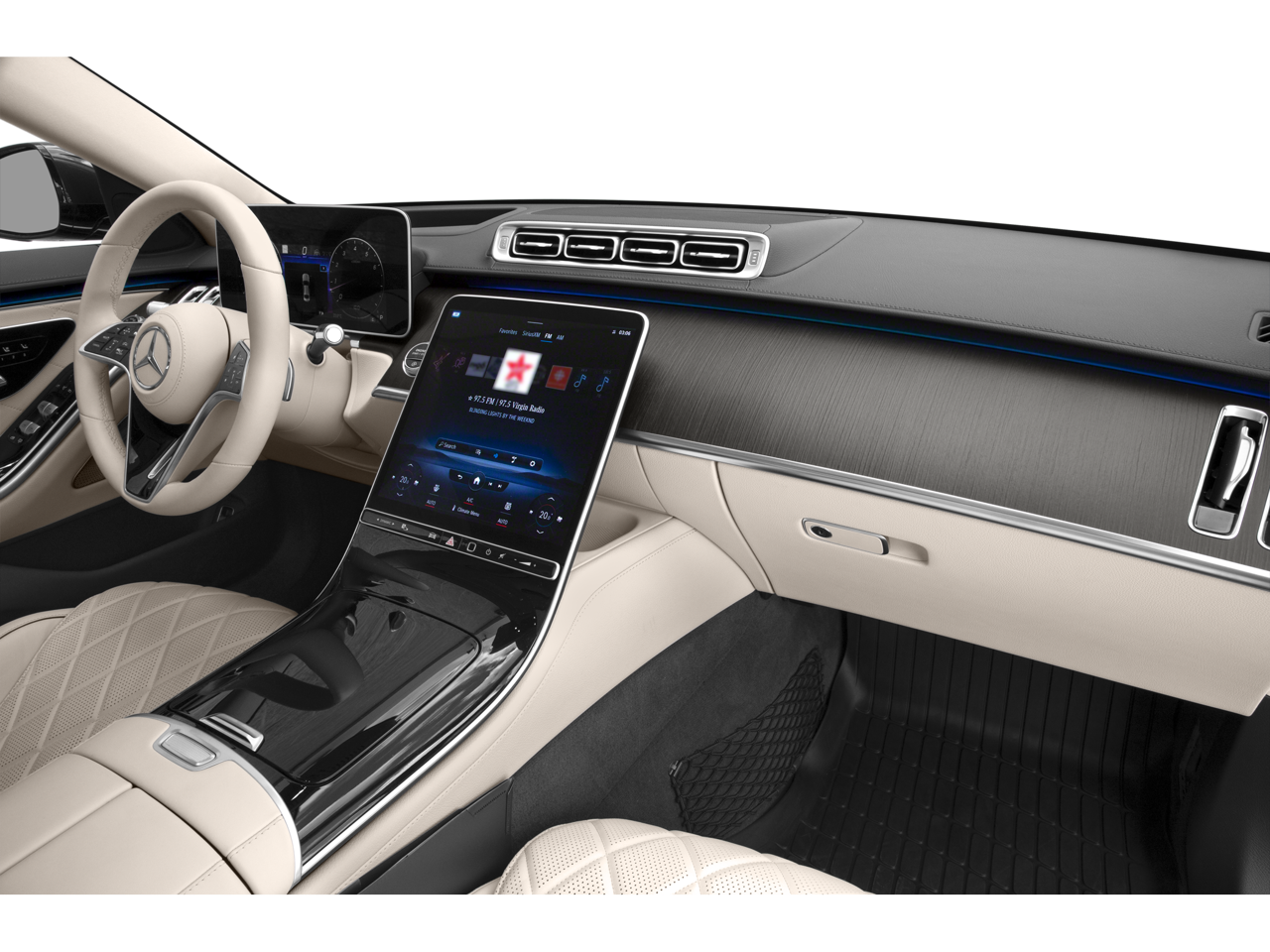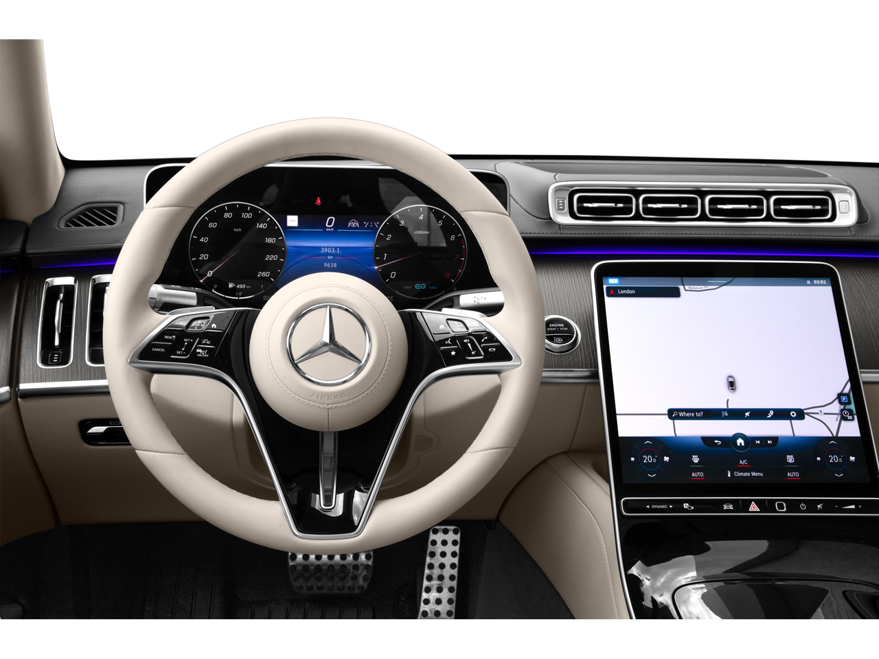 - Radio: MBUX Multimedia System -inc: 12.3 digital instrument cluster, 12.8" OLED touch center display, wireless front charging, 8 USB-C ports (4 front, 4 rear) and online music streaming